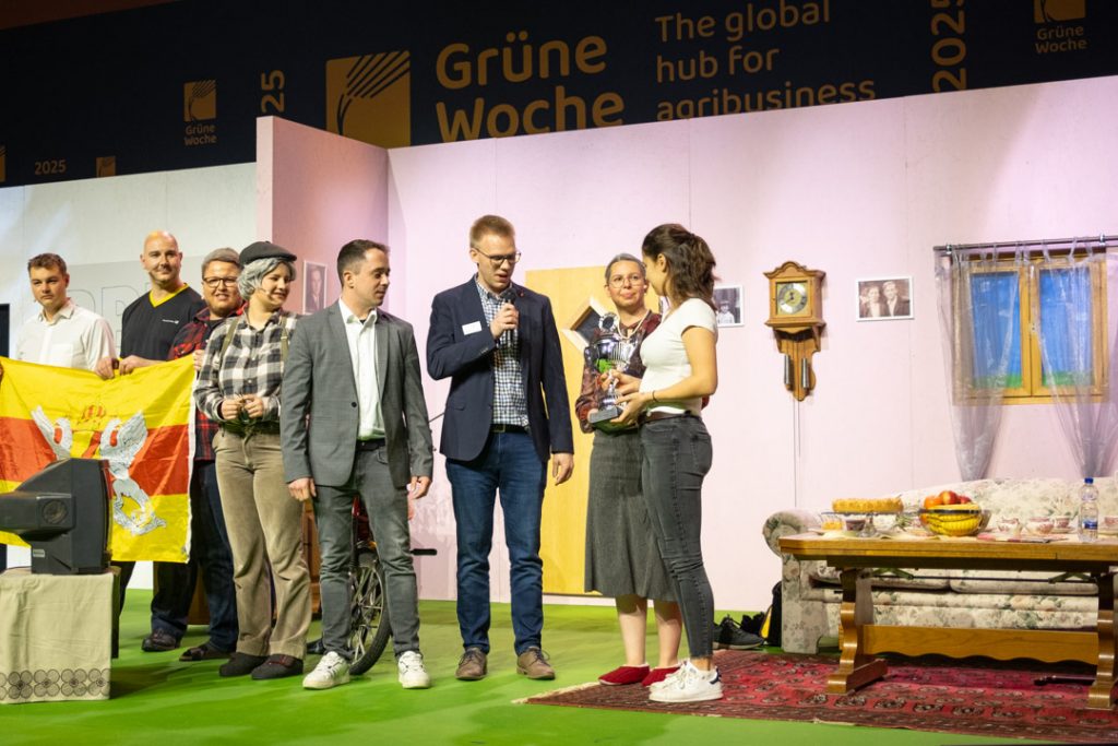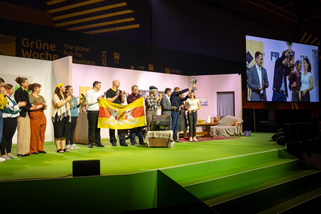 Der Sonntagmorgen begann politisch: Bei der Jugendveranstaltung des Bundes der Deutschen Landjugend verfolgten wir spannende Diskussionen über Landwirtschaft, Beteiligung und die Rolle junger Menschen in der Gesellschaft. Die Weltpremiere des Theaterstücks „BBL TV“ brachte uns zum Lachen, Nachdenken und Staunen – eine beeindruckende Leistung der Badischen Landjugend. Nachdem das Theater beendet wurde, wurde es für uns dann einmal kurz spannend. Unsere beiden Vorsitzenden Benedikt Kneer und Louisa Laugs wurden auf die Bühne gerufen und nahmen den Wanderpokal entgegen der von Jahr zu Jahr weitergereicht wird. Denn nächstes Jahr werden WIR das Theater auf der Grünen Woche organisieren, worüber wir uns schon jetzt riesig freuen!